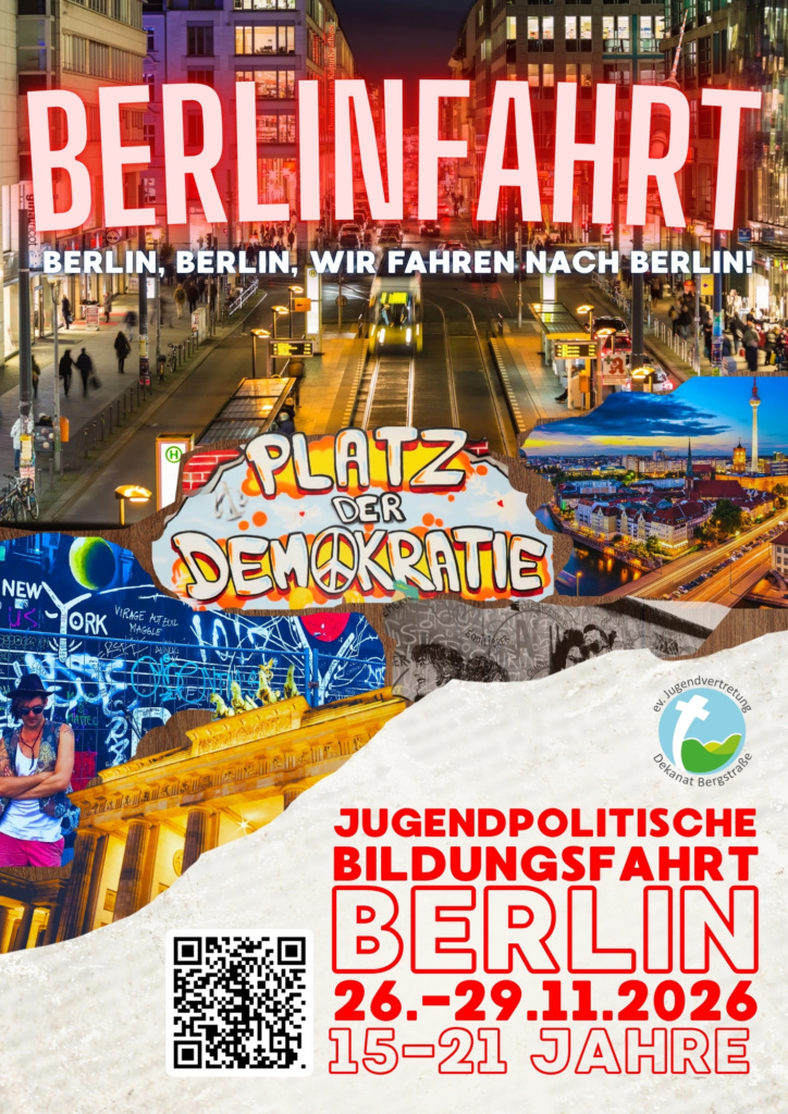Neben aktueller Politik setzen wir uns auch mit der Geschichte und Verantwortung unseres Landes auseinander und besuchen ein Mahnmal in Berlin. Natürlich soll auch das Hauptstadt-Feeling nicht zu kurz kommen: Wir wohnen zentral in einem Hostel am Alexanderplatz – perfekter Ausgangspunkt, um Berlin zu entdecken, durch die Stadt zu ziehen, Weihnachtsmarkt-Stimmung zu erleben und einfach gemeinsam eine starke Zeit zu haben.